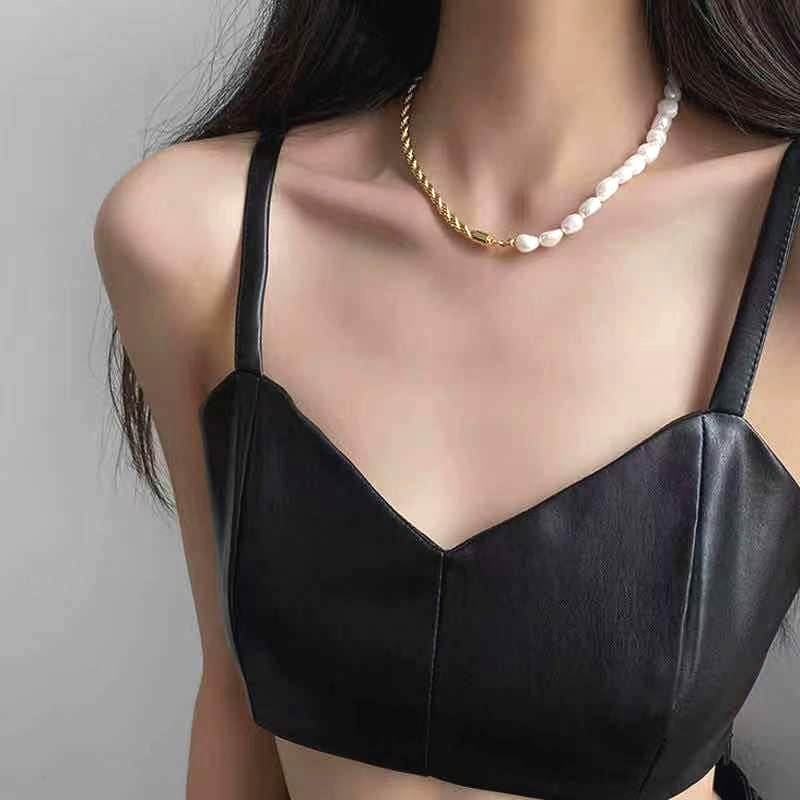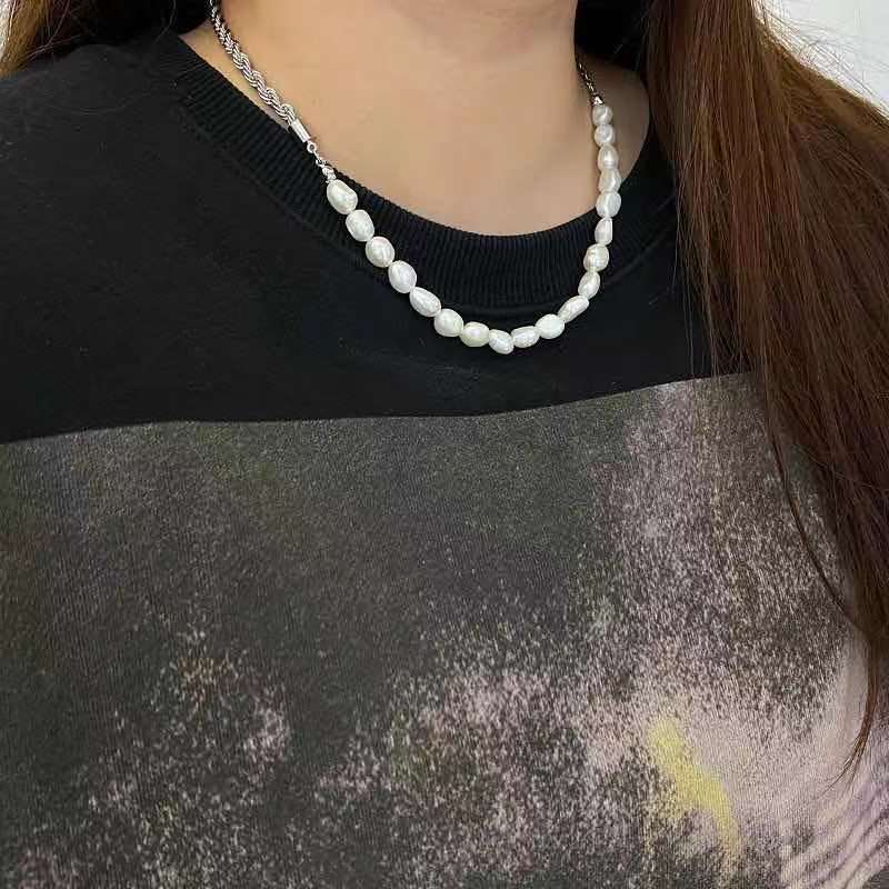 天然パールとチェーンを組み合わせたデザインが特徴のネックレス。
