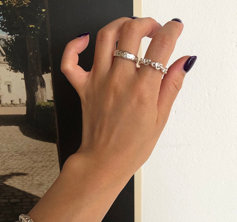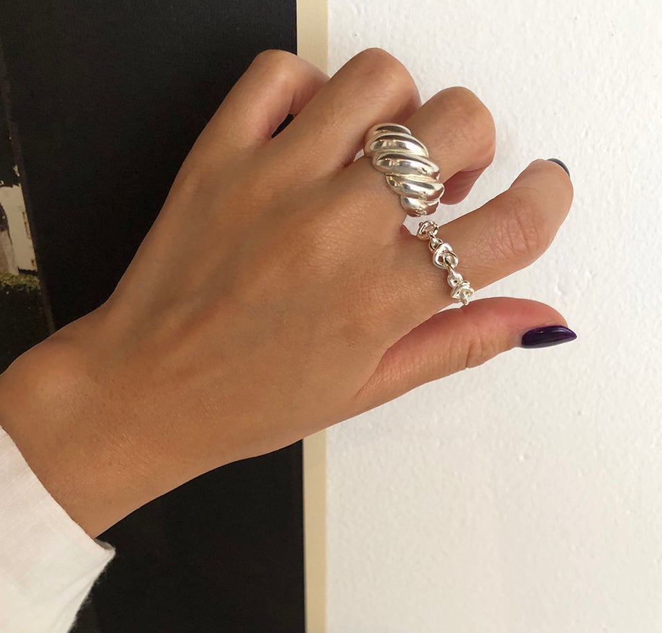 その日の気分に合わせて着ける指を変えられるのもチェーンリングの魅力です。
