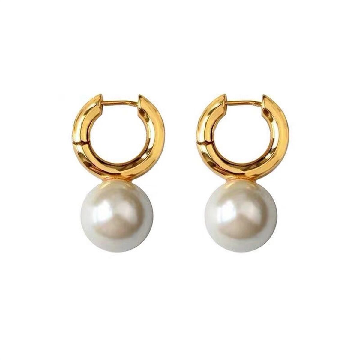 小さめパールを一粒飾った大人上品なキャッチレスフープピアス。