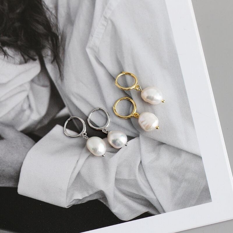 淡水バロックパールが揺れる プチフープピアスです