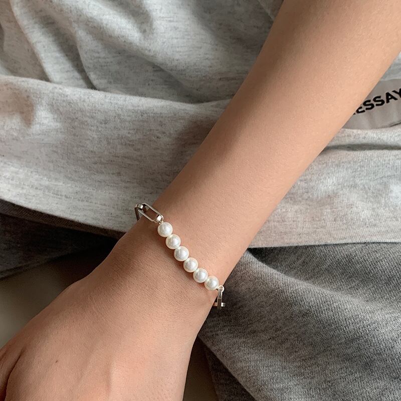 S925韓国風パールクエアチェーンブレスレット/ネックレス
