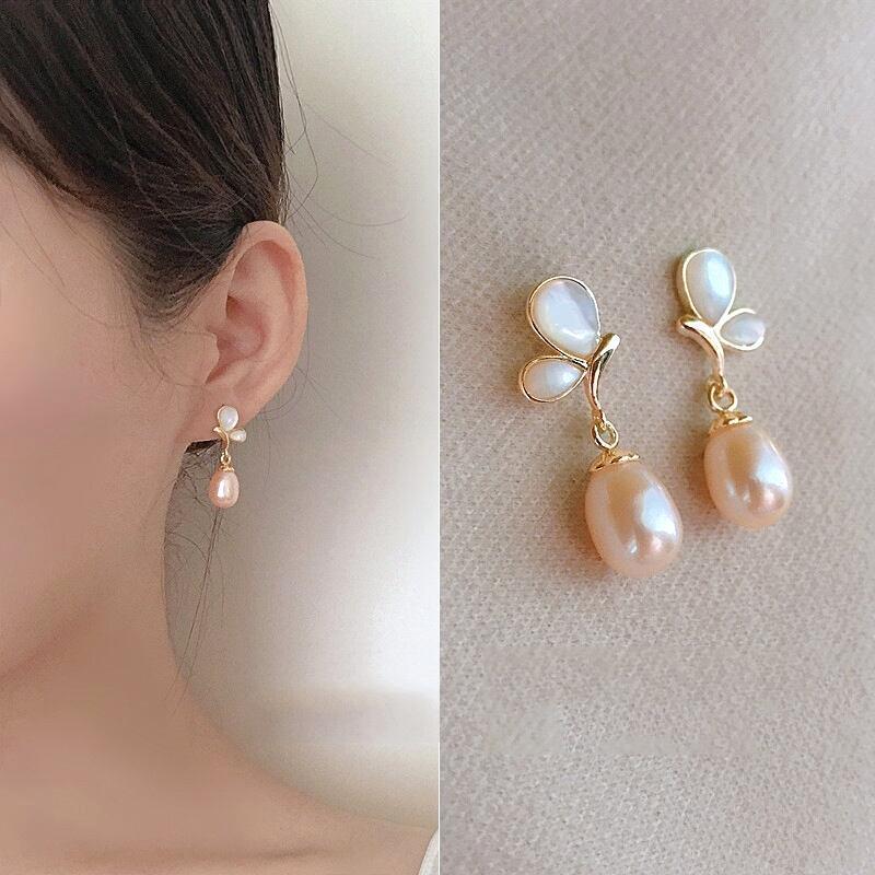S925韓国風ファッション バタフライ パール ピアス