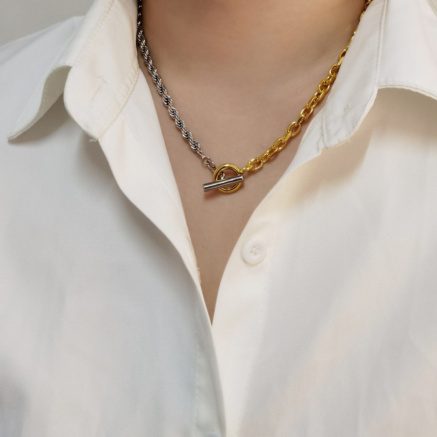 【NEW】韓国風ファッション ゴールド&シルバーネックレス