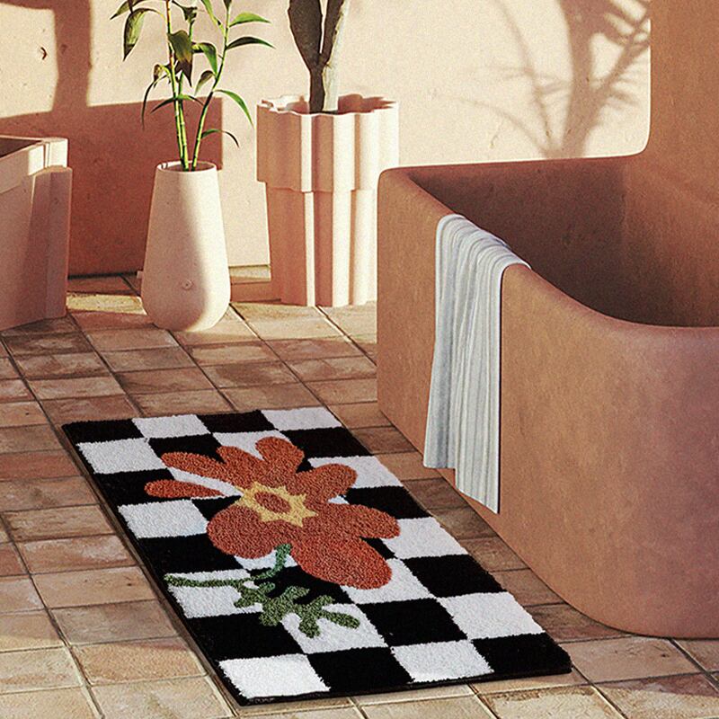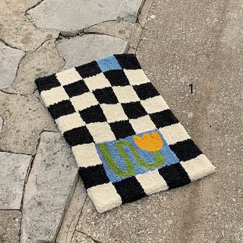 【CARPET】チェック柄花柄カーペット