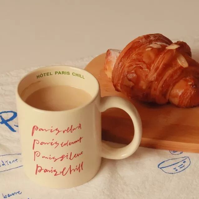 【CUP】英字柄クリームセラミックスカップ マグカップ