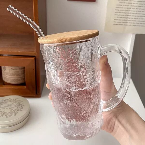 • 【CUP】レトロフランス字ガラスカップ&ストロー&蓋セット
