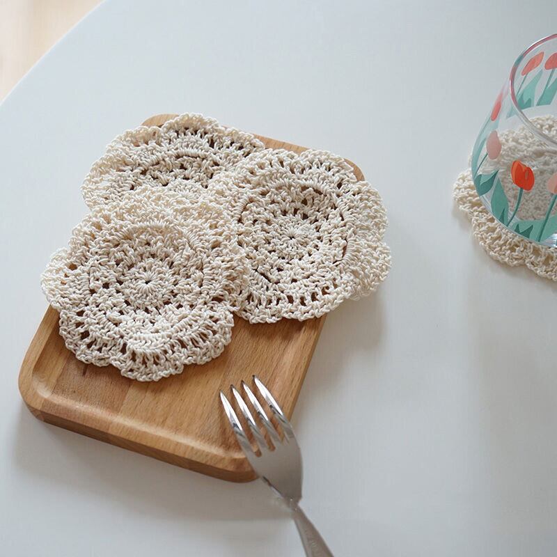 【COASTER】レースフラワー形編み風コースター