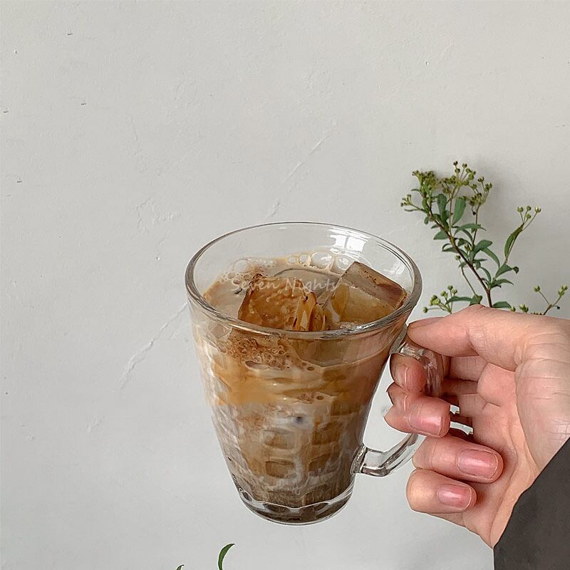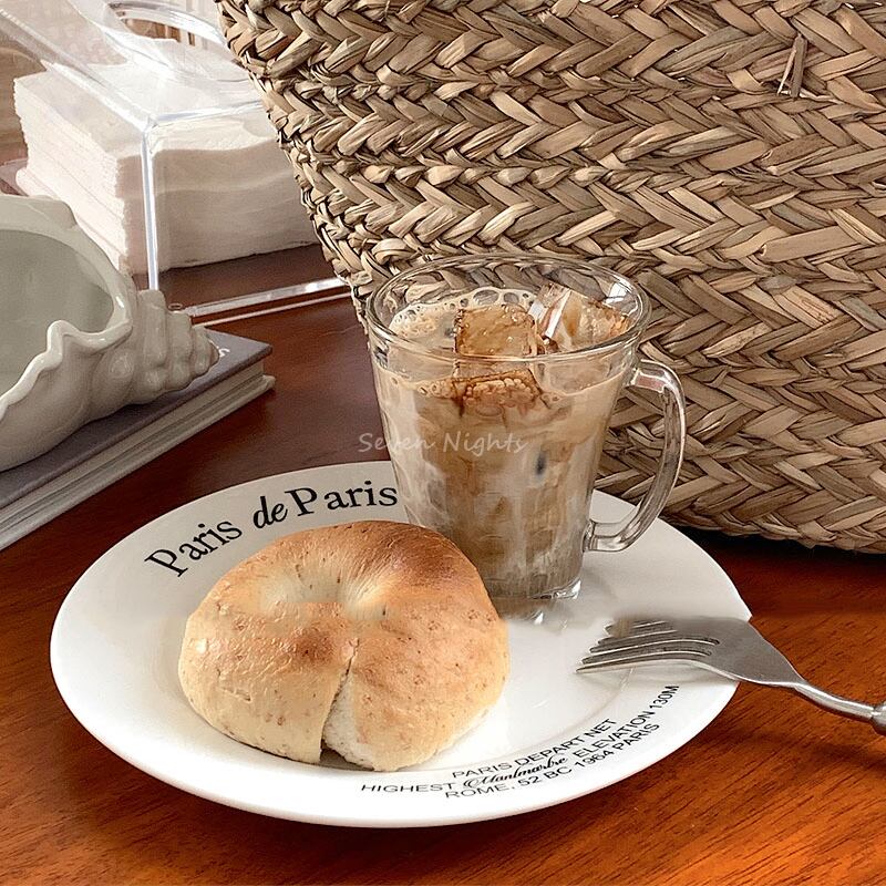 • 【CUP】レトロフランス字ガラスカップ&ストロー&蓋セット