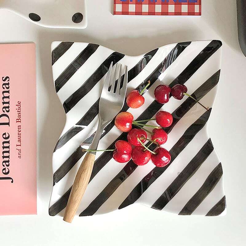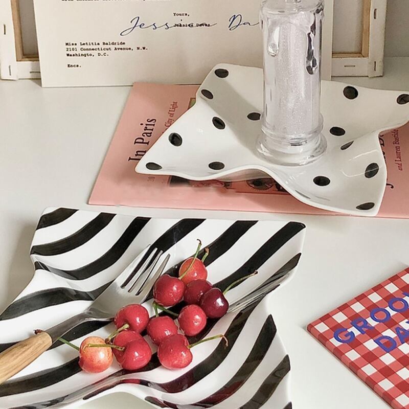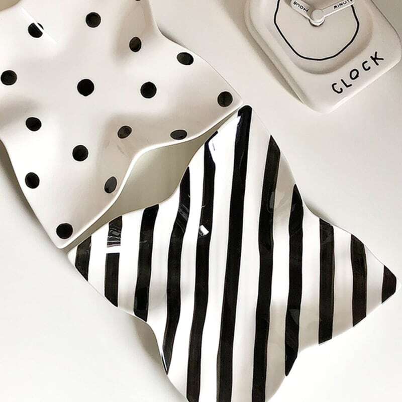 【PLATE】シンプルストライプORドット柄不規則プレート