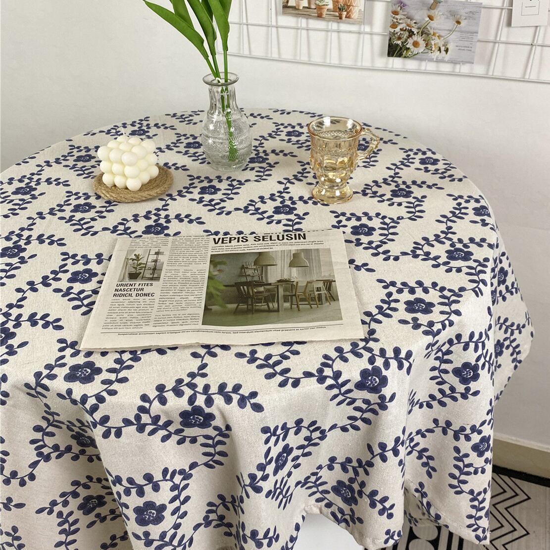 【TABLECLOTH】梅花ブルー梅花蔓ロゴテーブルクロス