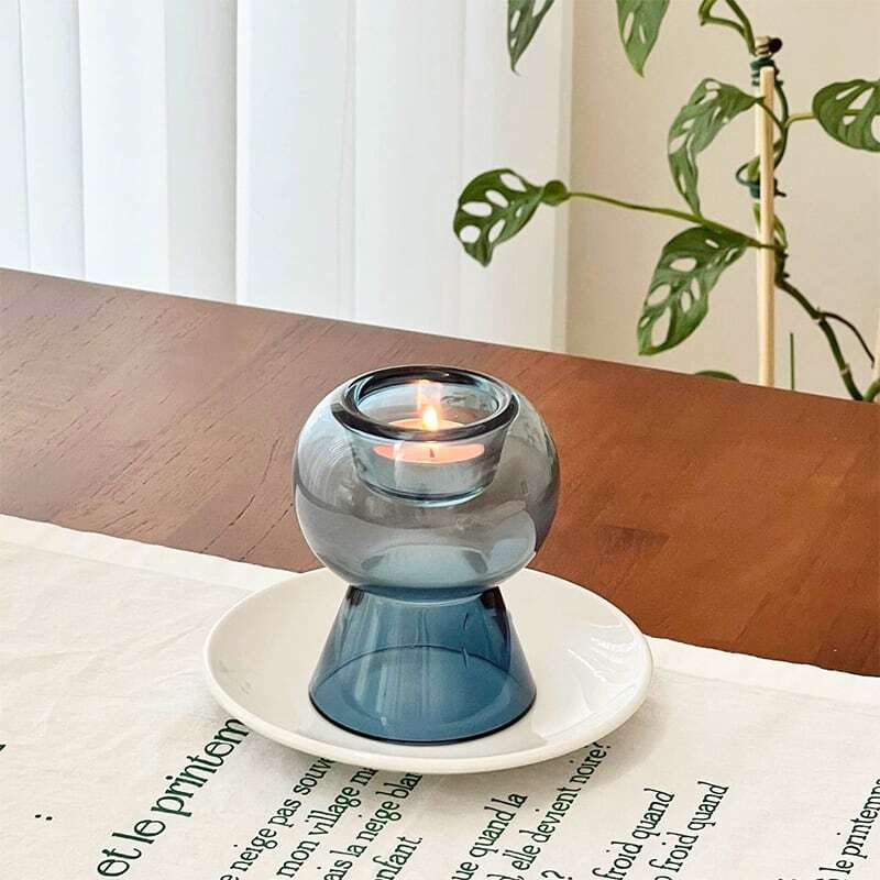 【VASE】ブルーガラスベース&キャンドルスタンド 2way