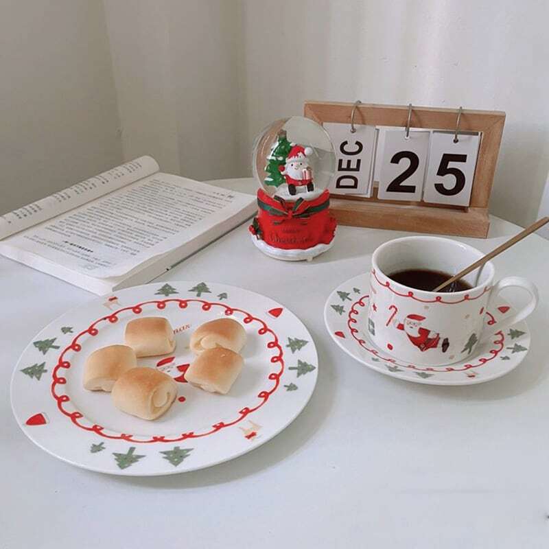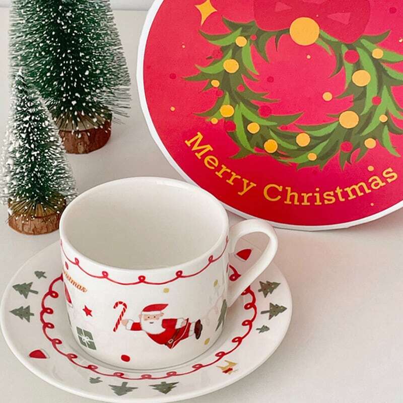【食器】サンタクロースキュートセラミックカップ&トレーセットORプレート