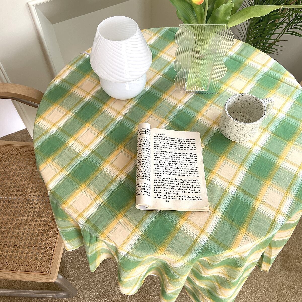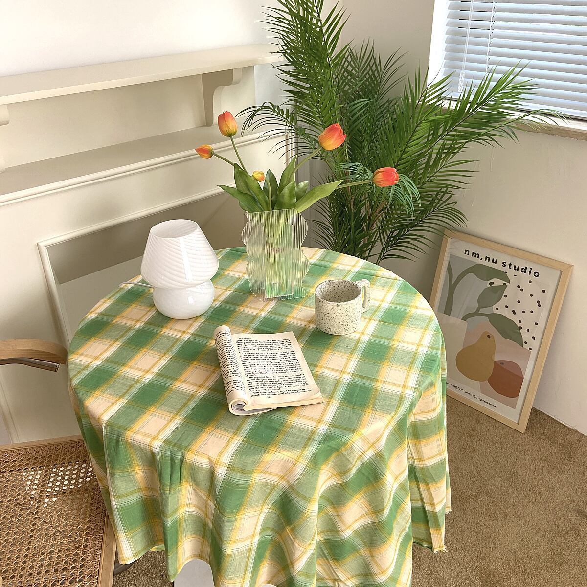 【TABLECLOTH】グリーンチェック柄リネンテーブルクロス