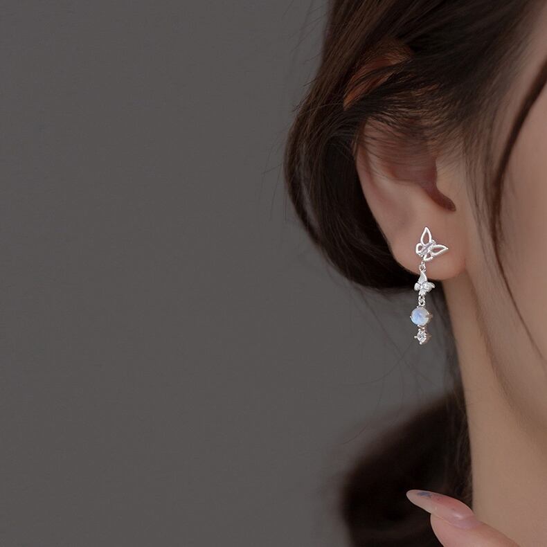S925ムーンストーン蝶形ピアス Pierce